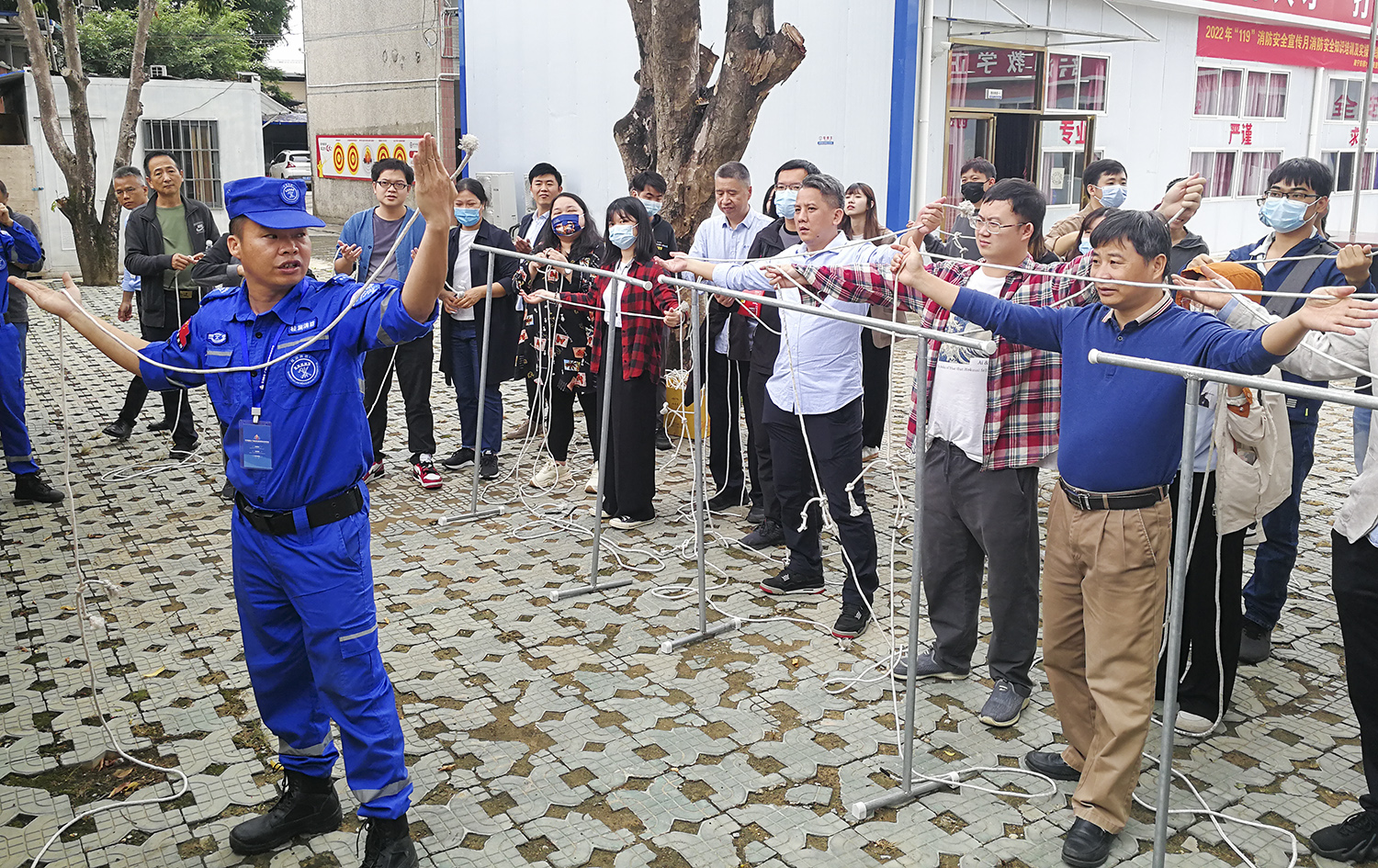 在實(shí)操演練階段,大家首先進(jìn)行了消防疏散逃生演練。在消防老師的指導(dǎo)下,大家4人一組,按照老師教授的方法,進(jìn)入事先準(zhǔn)備好的演練賬篷,親自體會(huì)火場(chǎng)逃生技巧。逃生演練后,參培人員還先后學(xué)習(xí)了消防水帶的安裝使用方法,干粉滅火器、二氧化碳滅火器的使用方法并進(jìn)行現(xiàn)場(chǎng)體驗(yàn)使用。整個(gè)實(shí)操演練組織有序,大家積極參與,配合默契。
