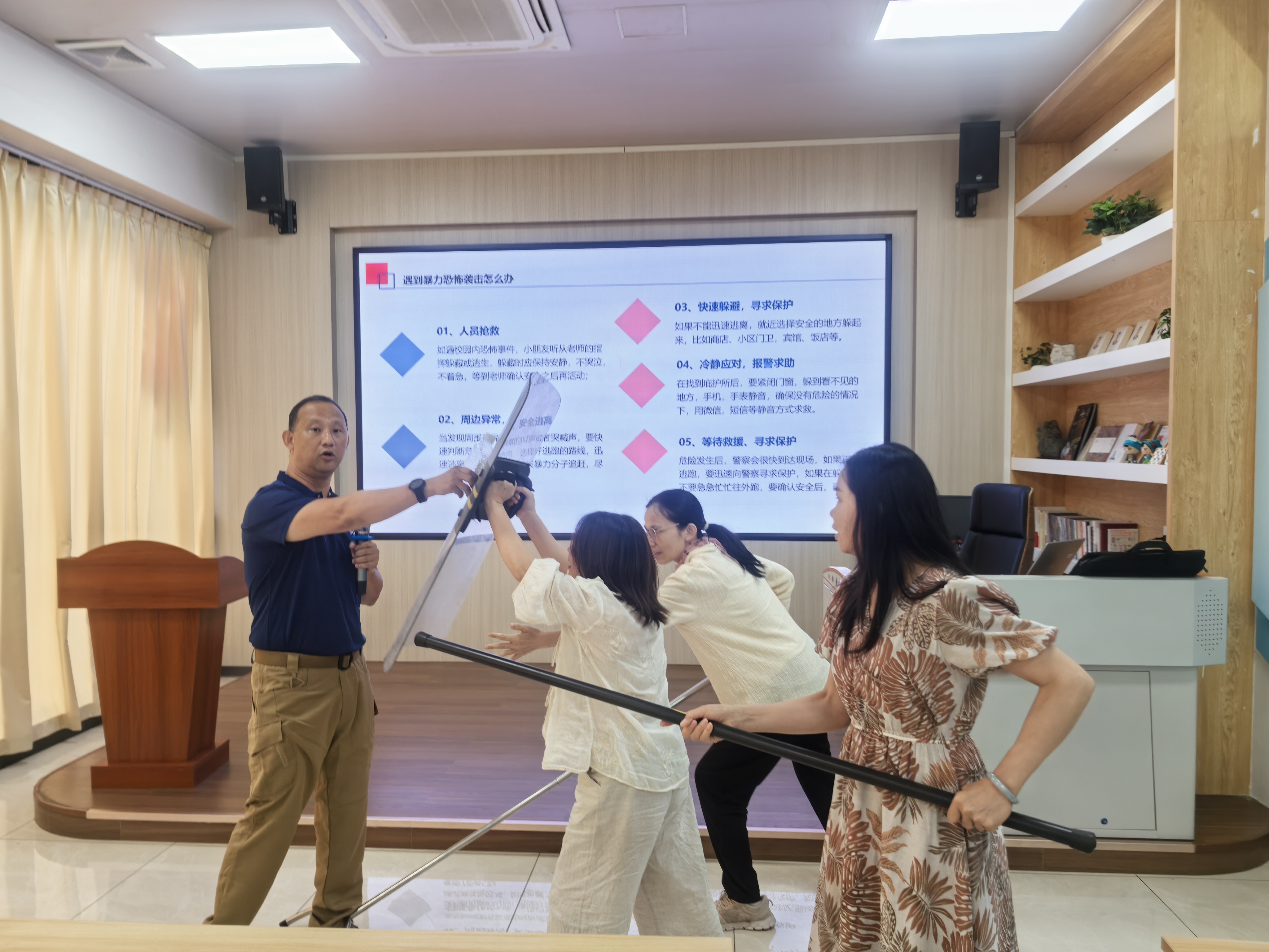 此次培訓特邀南寧市應急管理協(xié)會原惠哲教授現(xiàn)場指導,設置“盾棍叉陣型”“反恐防爆桌面推演”等實操課程,通過最小作戰(zhàn)單元協(xié)同訓練強化快速反應能力。培訓還系統(tǒng)解讀了《中華人民共和國國家安全法》《突發(fā)事件應對法》等法律法規(guī),結合昆明暴恐案等典型案例,剖析當前國際反恐形勢與公共設施安全風險。