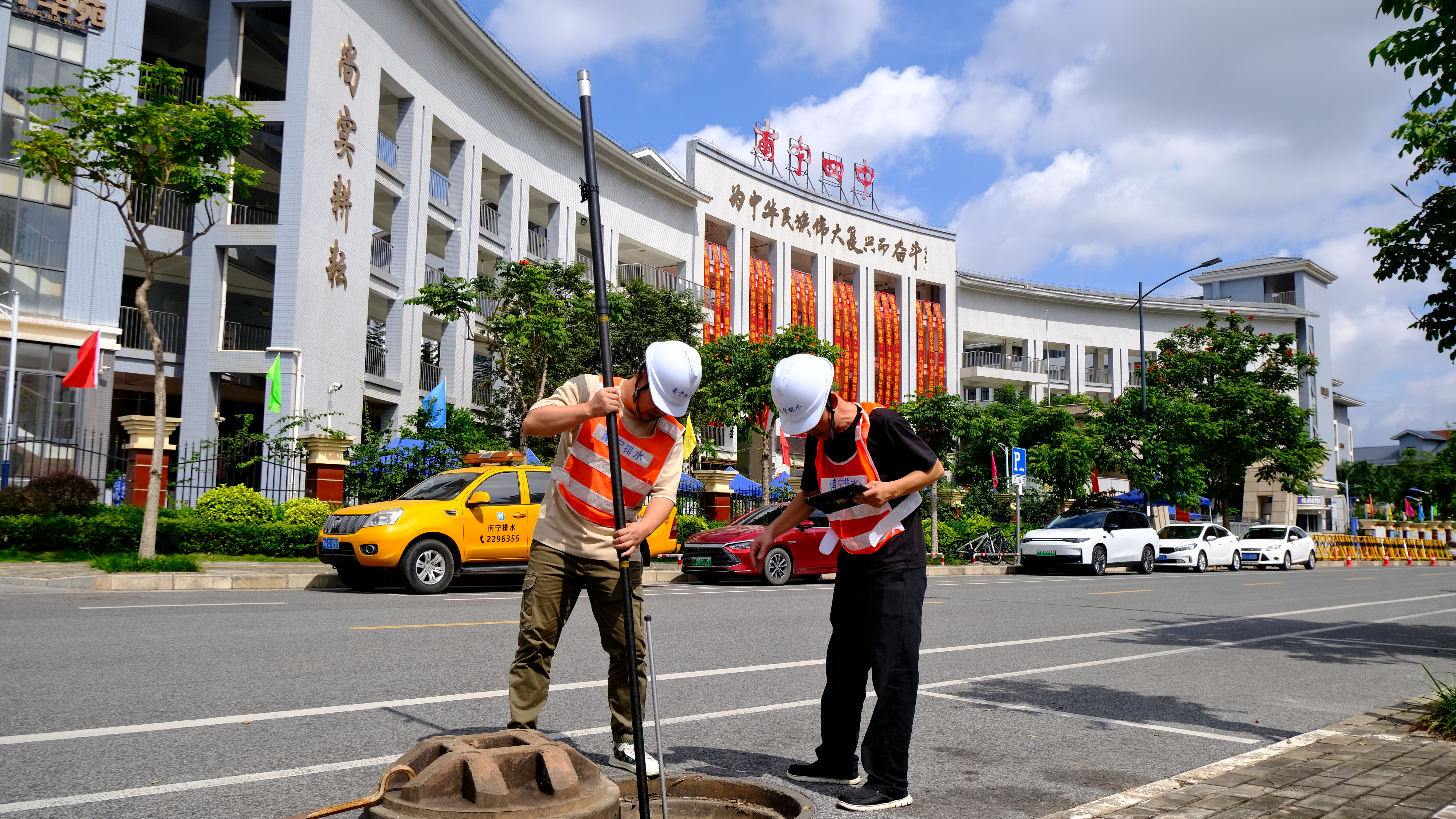 中考期間,市排水公司進一步加強值守力量,在各考點安排專人定點值守,隨時應對突發(fā)排水險情。同時,對每個考點實施“一點一策”保障方案,提前部署排水搶險車、抽水泵等應急設備,確保一旦出現(xiàn)積水情況,能夠第一時間進行抽排作業(yè)。27日凌晨,南寧市氣象臺發(fā)布暴雨紅色預警,市排水公司根據(jù)預案啟動全員備勤值守,提前到達易積水路段,第一時間開展積水處置工作,最大程度保證考生平安赴考。